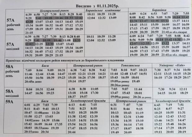 Із 3 листопада додатковий транспорт курсуватиме вже за розкладом робочого дня на маршрутах №58а і №59.