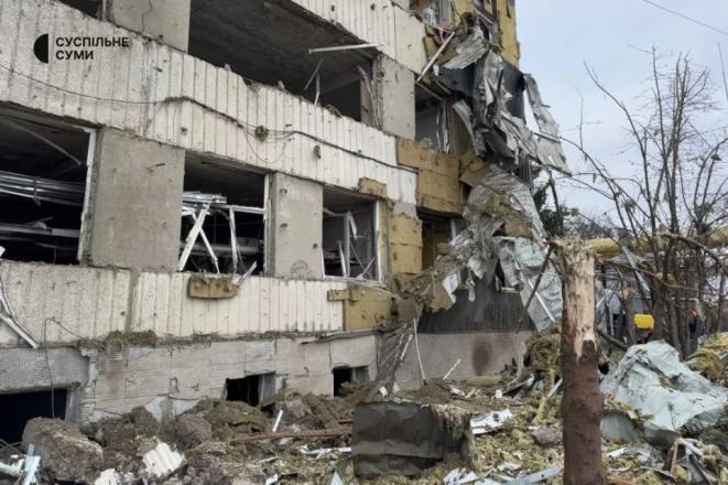 13 січня близько 23:05 російські війська завдали удару по Сумах, влучивши в район вулиці Тополянська, 18/1. Внаслідок обстрілу було пошкоджено низку будівель, теплотрасу та автомобілі.