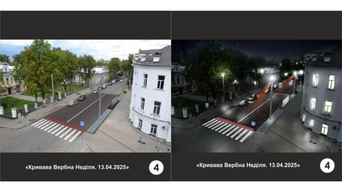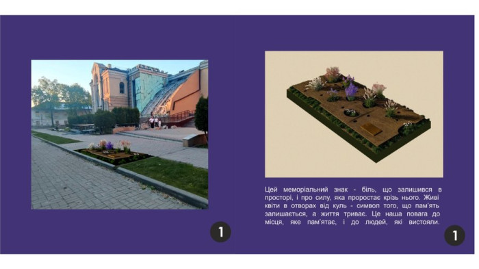 Між проїжджою частиною та тротуаром встановлюється стела пам’яті. На ній розміщено напис про подію та її дату, іменний список загиблих, спеціальні ніші для покладання квітів", — йдеться у повідомленні-поясненні до проєкту.