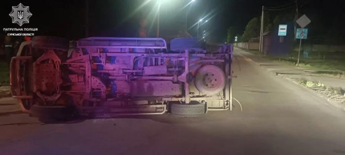 Як повідомили в патрульній поліції Сумщини, на місці події інспектори встановили, що 41-річний водій автомобіля Mazda, перебуваючи в стані алкогольного сп’яніння, не впорався з керуванням, наїхав на бордюр, що призвело до перекидання транспортного засобу. Після цього некерована Mazda зіткнулася з автомобілем Audi, який рухався назустріч. На щастя, внаслідок ДТП ніхто не постраждав.