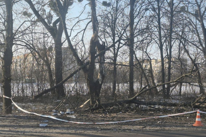 Безпілотник влучив у дерево біля дороги. Поранений чоловік, який був біля зупинки у момент удару.