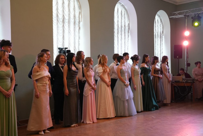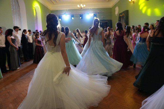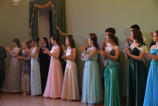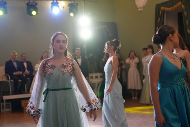 Майже два місяці репетицій — і цього вечора учасники балу в парадних вбраннях вийшли на паркет обласної філармонії. 16-річна Анастасія каже, що найбільше труднощів їй додав іспанський вальс.