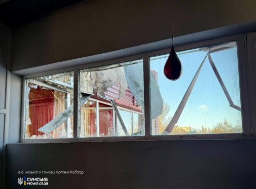 Про це повідомили у Сумській міській військовій адміністрації. Внаслідок удару в Ковпаківському районі пошкоджено дах та будівлю торговельного центру, вибито вісім вікон. За попередньою інформацією, обійшлося без постраждалих.