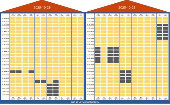 Як повідомили в «Сумиобленерго», графік відключень на другу половину доби виглядає так: