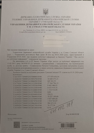 Цю інформацію Дмитру Наталусі повідомили у відповідь на його запит до управління державної казначейської служби України в Сумах.
