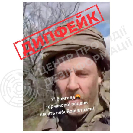 Центр протидії дезінформації фіксує поширення в TikTok фейкового відео, на якому чоловік у військовій формі видає себе за українського захисника, який нібито проходить службу на Сумщині. У ролику він заявляє про «масові небойові втрати» та «смерті у підрозділі через інфекцію».