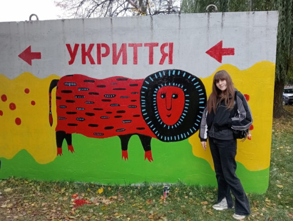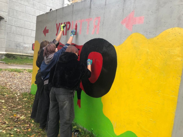 Сірі стіни мобільного укриття, що встановлено на Садовому Бульварі, тепер привертають увагу перехожих яскравою реплікою однієї з картин Марії Примаченко. Талановиті учні Шосткинської школи мистецтв разом зі своєю викладачкою Алевтиною Філон намалювали тут фантастичного звіра.