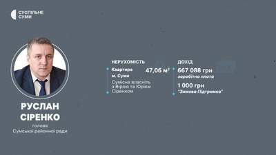 Голова Сумської РДА Михайло Мельник у 2025 році став власником кількох будинків та земельних ділянок у Лебединській громаді. Голова Сумської районної ради Руслан Сіренко та керівниця апарату РДА Олена Богатир задекларували кошти від "Зимової підтримки". А Володимир Біцак, заступник Сіренка, зробив разом зі своєю дружиною собі подарунок на 110 тис. грн.
